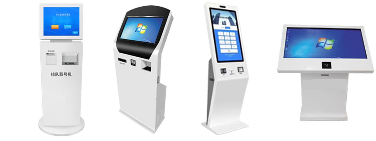 排隊叫號系統匹配的取號機,常規尺寸有17、18.5、21.5、32、43、55寸,外設包括小票打印機、二維碼掃描模塊、身份證讀卡器模塊。