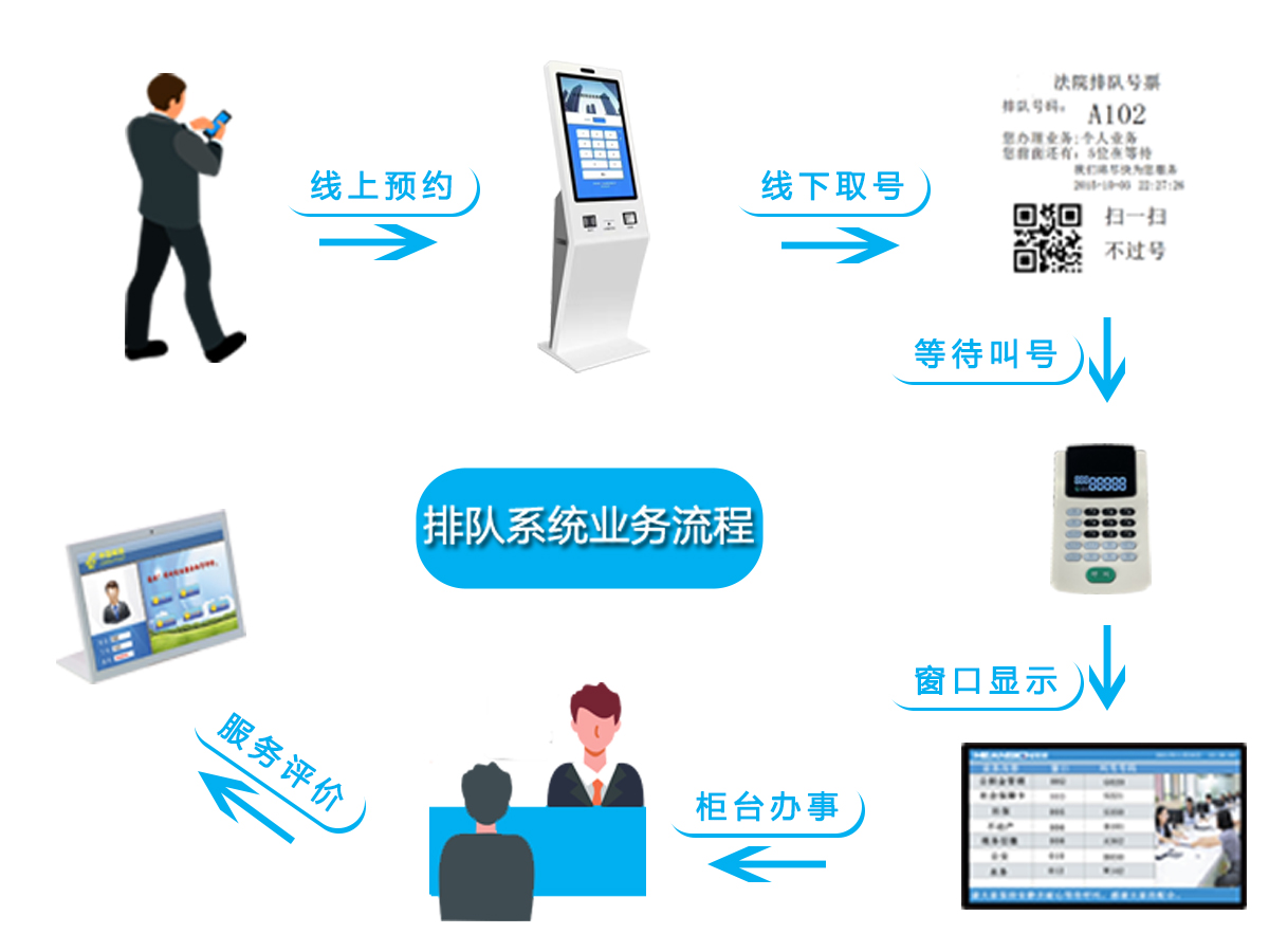 排隊叫號系統顯示設備可以是單雙色LED屏,也可以是液晶顯示屏,用于展示排隊數據,也可以從液晶顯示屏出發聲,
